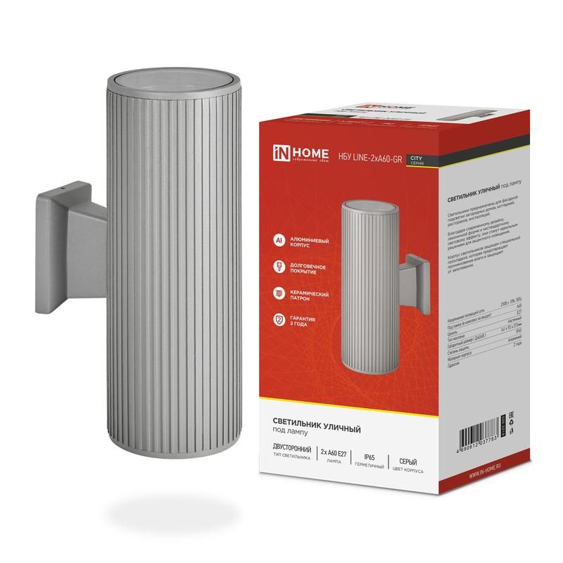 Светильник уличный настенный двусторонний НБУ LINE-2хA60-GR алюминиевый серый IP54 IN HOME - 4690612037783