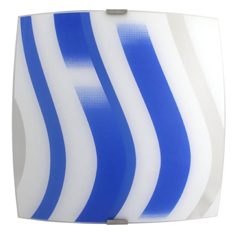 Светильник 300х300 НПБ 09-60-003 М83 матовый белый-синий от ЭЛЕТЕХ - компактный настенно-потолочный прибор с матовым белым корпусом и прозрачным стеклом, предназначенный для равномерного освещения жилых и офисных помещений. Поддерживает лампы E27 до 60 Вт, включая LED и КЛЛ. Артикул 1005209267 соответствует серии Колорика Аделайн.