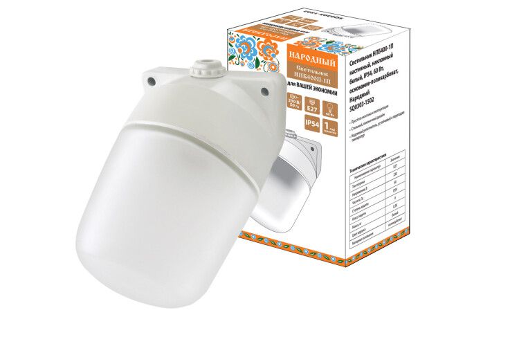 Светильник пылевлагозащищенный НПБ400-1П настенный наклонный белый, 60 Вт, IP54, основание-поликарбонат - компактный светильник от TDM ELECTRIC серии «Народная» для надёжного освещения в условиях повышенной влажности, запылённости и перепадов температур. Артикул sq0303-1502 подходит для монтажа на стены, потолки и другие поверхности.