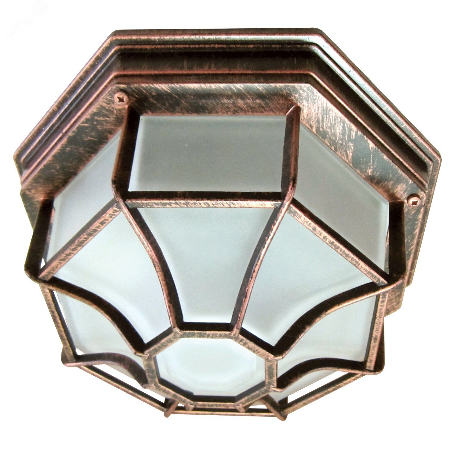 Светильник НПП 03-100-005 IP44 матовый /корпус с решеткой медь индивидуальная упаковка - это потолочный светильник с алюминиевым корпусом и защитной решёткой, предназначенный для наружного и интерьерного освещения. Бренд ЭЛЕТЕХ выпускает эту модель в серии «Тартаруга» с артикулом 1005501034. Он подходит для садово-паркового освещения, веранд, беседок и зон у входа.