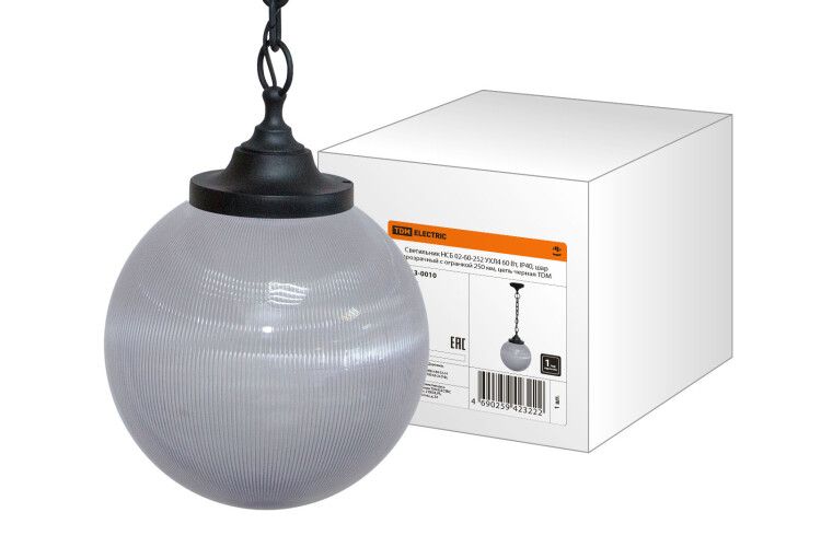 Светильник НСБ 02-60-252 УХЛ4 60 Вт, IP40, шар прозрачный с огранкой 250 мм, цепь черная | SQ0313-0010 TDM