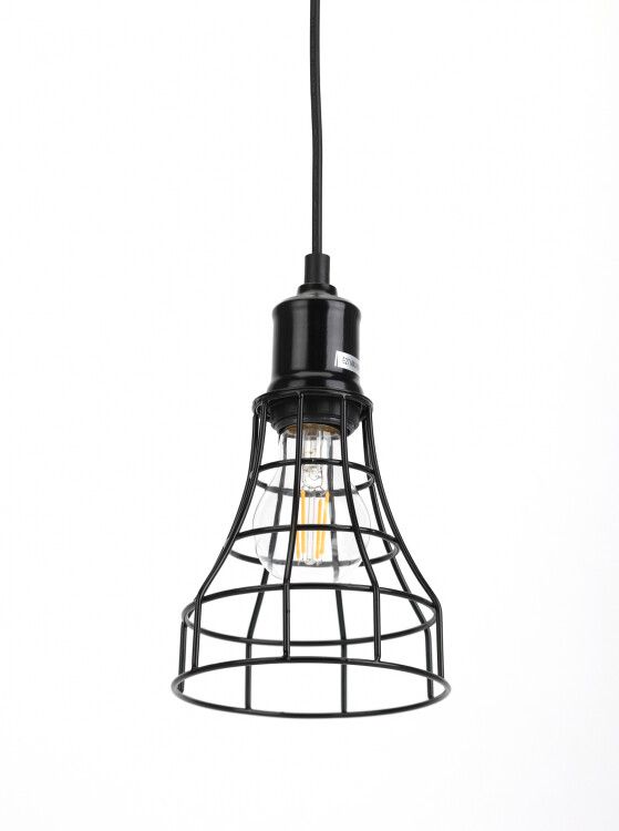 Светильник подвесной металл, E27, max 60W, d135 мм, черный поставляется с готовым подвесом - его можно легко настроить по длине перед установкой. Кабель оконечный - подключение осуществляется через клеммы в верхней части корпуса. Для монтажа необходима предварительно подготовленная точка крепления на потолке с заземлением. Установка возможна только на твердые поверхности (бетон, деревянные балки, металлические профили). Не рекомендуется использовать с люминесцентными или LED-лампами, требующими драйверов - они не будут работать корректно без внешнего устройства управления.