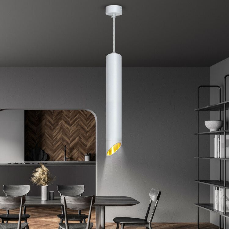- Длинный подвес - удобен для высоких потолков и создания эффекта “парящего” света