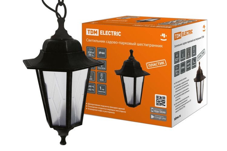 Светильник садово-парковый НСУ 06-60-001 шестигранник, подвес, пластик, расс.пластик, черный | SQ0330-0763 TDM