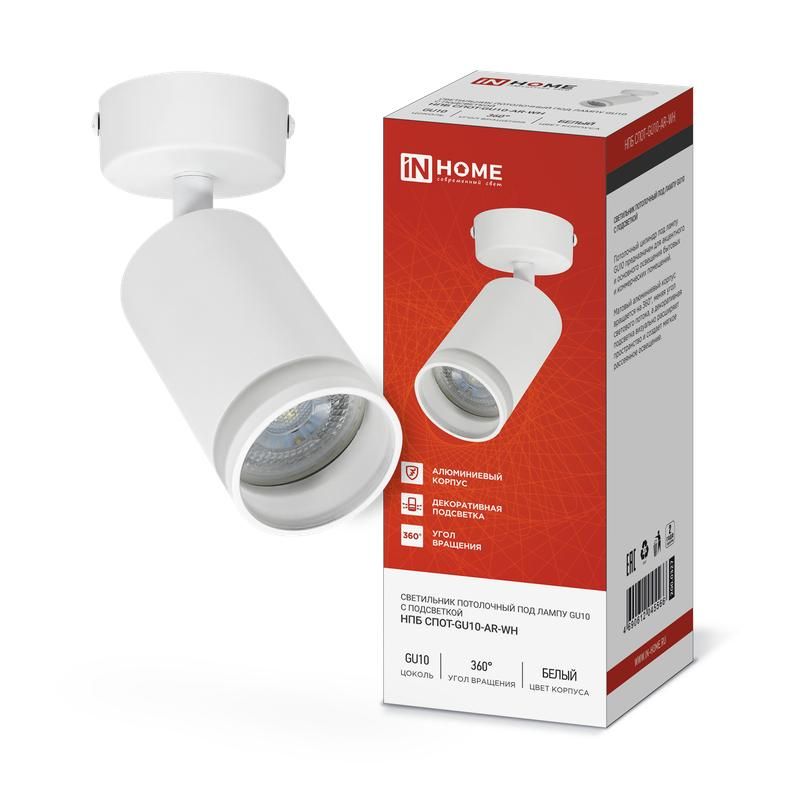 | Светильник НПБ СПОТ-GU10-AR-WH 55х100мм потолочн. под лампу GU10 бел. IN HOME 4690612045566 | 25.02.2026 | 866 шт. | 319,02 ₽ | шт. | от 7 дней |