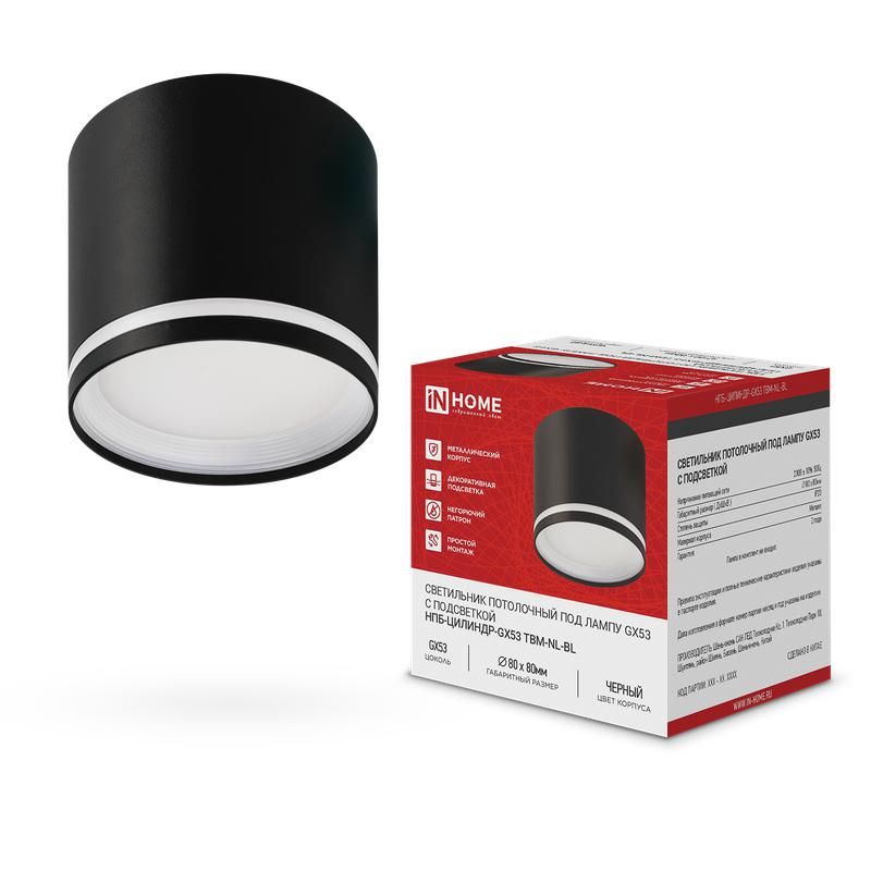 | Светильник НПБ-ЦИЛИНДР-GХ53 TBM-NL-BL 80х80мм потолочн. с подсветкой черн. IN HOME 4690612059419 | 24.02.2026 | 1 шт. | 246,48 ₽ | шт. | от 19 дней |