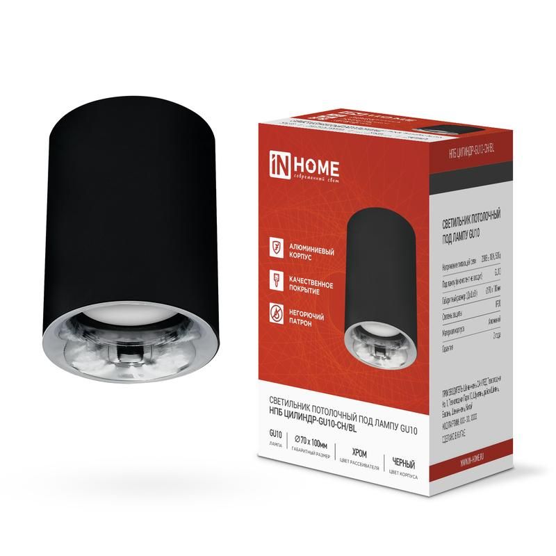 Светильник НПБ ЦИЛИНДР-GU10-CH/BL 70х100мм потолочн. под лампу GU10 черн. IN HOME 4690612045528