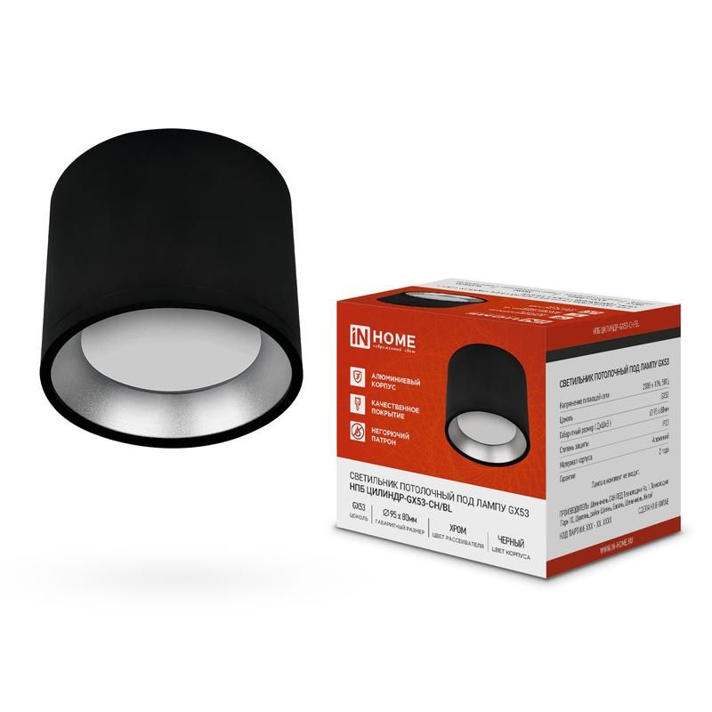 - Светильник потолочный накладной цилиндр GX53 95x80мм черный/хром от INHOME лучше всего сочетается с другими изделиями серии INHOME - единый стиль и качество сборки.