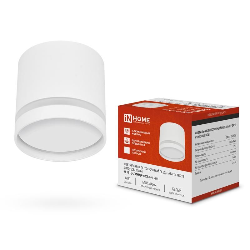 Светильник НПБ ЦИЛИНДР-GX53-NL-WH 82х80мм потолочн. под лампу GX53 бел. IN HOME 4690612046532