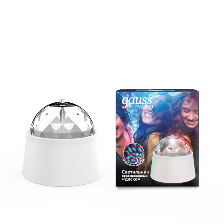 Светильник светодиодный 3 Вт белый IP20 с фиксированной проекцией диско с кабелем электропитания и выключателем от GAUSS - это компактный источник света с разноцветной проекцией, предназначенный для создания мягкой атмосферы в помещениях. Он работает от сети 230 В, имеет встроенный выключатель и питается через обычную розетку. Модель diy0021 подходит для детских комнат, спальń и офисов, где нужен ненавязчивый декоративный свет.