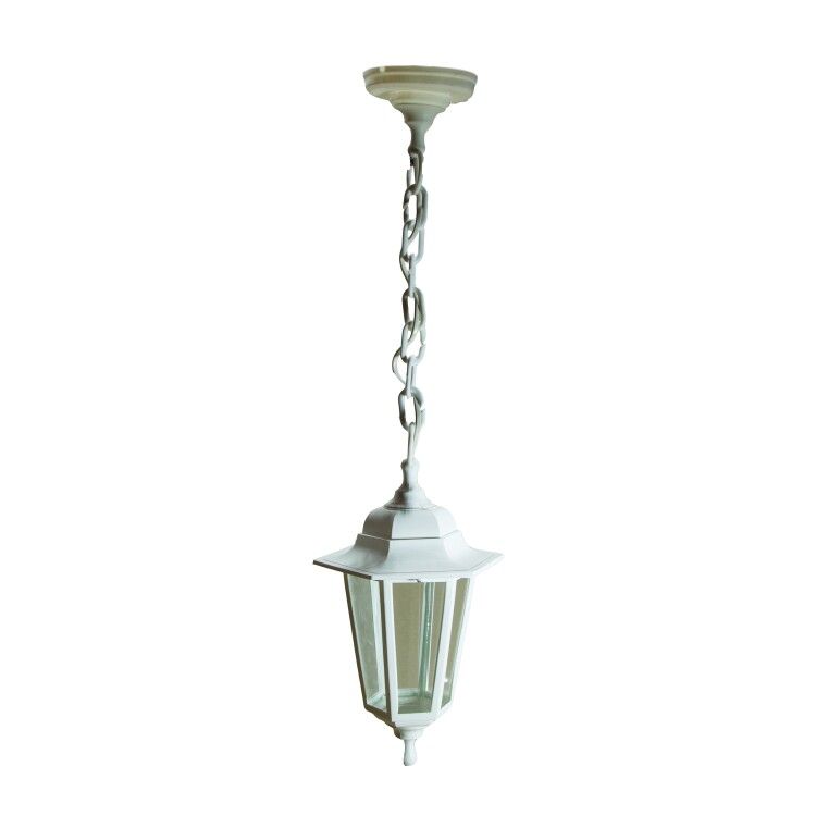 Светильник подвесной садово-парковый шестигранный белый IP44 Е27 max60Вт НСУ 06-60-001 ЭРА - это надёжный источник света для наружного освещения территорий, рассчитанный на работу от бытовой сети 220 В. Благодаря пластиковому корпусу, стеклянному плафону и защите IP44, он устойчив к влаге и пыли, что делает его подходящим для установки в парках, дворах и на фасадах зданий.