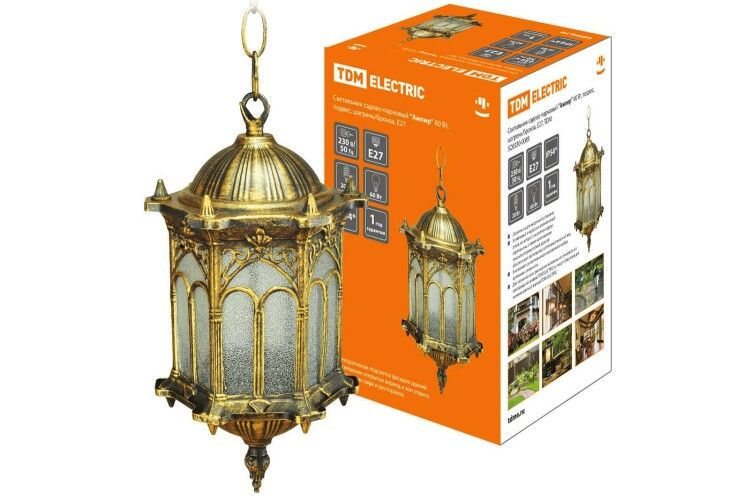 Светильник садово-парковый НСУ Ампир 60Вт ЛН/КЛЛ/LED Е27 IP54 подвес,шагрень/бронза | SQ0330-0089 TDM