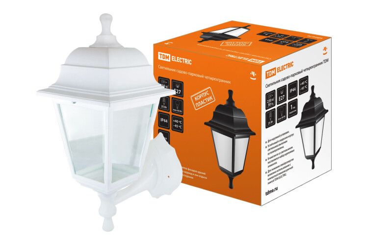 Светильник садово-парковый НБУ 04-60-001 60Вт ЛН/КЛЛ/LED Е27 IP44 четырехгранник, настенный, пластик, белый | SQ0330-0734 TDM