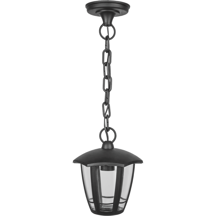 Светильник садово-парковый подвесной NOF-P09-BL-IP44-E27 (6 граней, черный) от бренда Navigator предназначен для наружного освещения территорий - парков, дорожек, зон отдыха. Модель совмещает простую конструкцию, защиту от брызг и совместимость со стандартными лампами накаливания, что делает её надёжным решением для базового ландшафтного освещения.