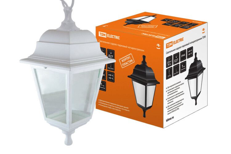 Светильник садово-парковый НСУ 04-60-001 60Вт ЛН/КЛЛ/LED Е27 IP44 четырехгранник, подвес, пластик, белый | SQ0330-0736 TDM