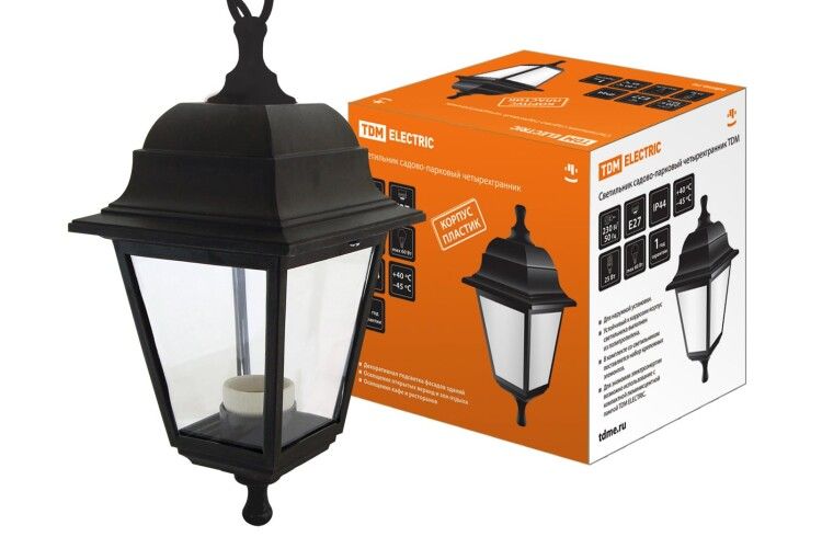 Светильник садово-парковый НСУ 04-60-001 60Вт ЛН/КЛЛ/LED Е27 IP44 четырехгранник, подвес, пластик, черный | SQ0330-0706 TDM