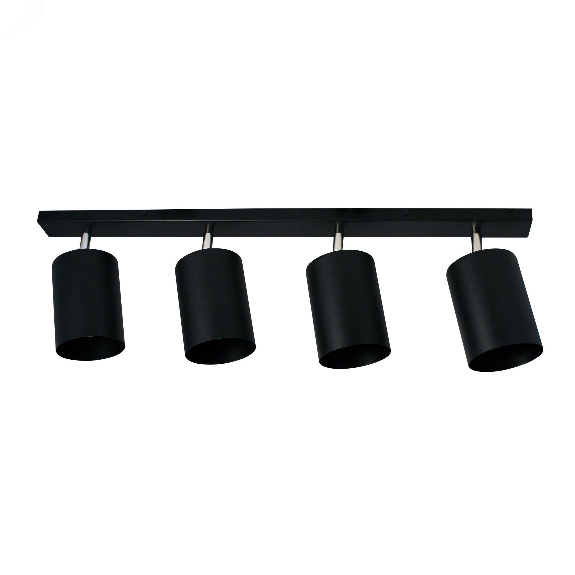 Светильник спот НПБ 01-4х60-513 черный матовый/черный ИУ крепится к потолку через универсальный узел на планке, что позволяет легко устанавливать его даже после монтажа натяжного потолка. Каждый из четырёх плафонов поворачивается вручную - это даёт возможность менять направление света без инструментов. Для подключения требуется трёхжильный провод с заземлением (класс защиты I). Диаметр посадочного отверстия не указан - перед монтажом проверьте соответствие проёмам в потолке. Лампы заменяются без демонтажа светильника - достаточно открутить старую и вставить новую E27.
