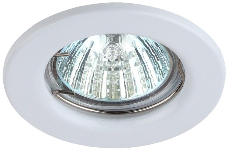 Светильник точечный штампованный белый 50Вт MR16 12В/220В требует установки внешнего электронного трансформатора, который преобразует 220 В в 12 В. Без него лампа не будет работать. Установка выполняется в подготовленное отверстие диаметром 60 мм. Крепление осуществляется за счет пружинных фиксаторов - типичный способ для встраиваемых светильников. Обязательно проверьте соответствие трансформатора нагрузке: он должен выдерживать до 50 Вт. Лампа MR16 с цоколем GU5.3 должна быть приобретена отдельно - в комплект не входит.