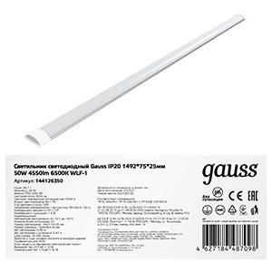 Светильник светодиодный линейный LED ДПО 50 Вт 4550 Лм 6500К 1492х75х25 мм IP20 алюминий матовый WLF-1 Gauss - 144126350