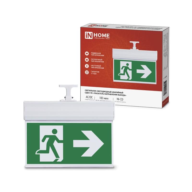 Светильник светодиодный СДБО-УВ "УКАЗАТЕЛЬ НАПРАВЛЕНИЯ ВЫХОДА" 3 часа NI-CD AC/DC аварийный двусторон. IN HOME 4690612040288