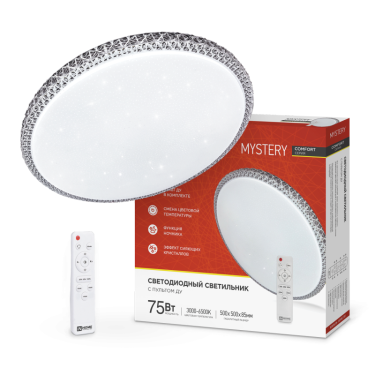 Светильник светодиодный COMFORT MYSTERY 75Вт 230В 3000-6500K 6000Лм 500x65мм с пультом ДУ | 4690612034829 IN HOME