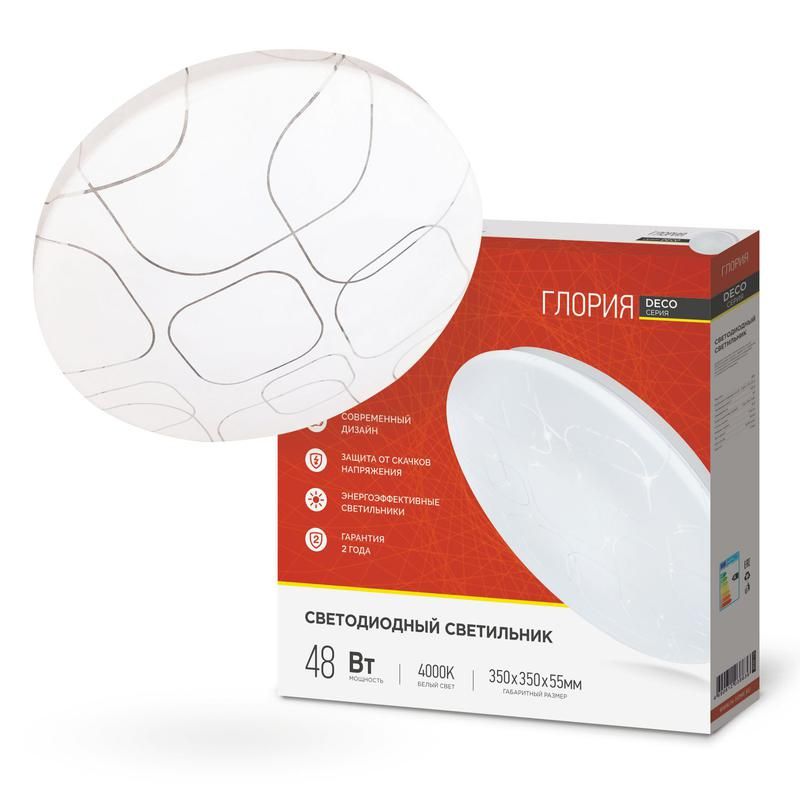 Светильник светодиодный 48Вт 4000К 3120-4320лм 230В 350х55мм, серия DECO ГЛОРИЯ IN HOME предназначен для установки на потолок в комнатах с высотой до 3 метров. Подходит для спальни, гостиной, кухни, коридора, офиса или зоны отдыха. Обеспечивает мягкое, рассеянное освещение без бликов и мерцания, что делает его удобным для длительного использования.