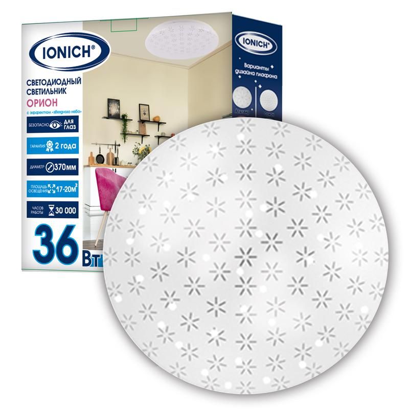 Светильник светодиодный декоративный 2221 "Орион" с эффектом "Звездное небо" 36Вт 2500лм 230В 6500К 350мм IP20 IONICH 1769