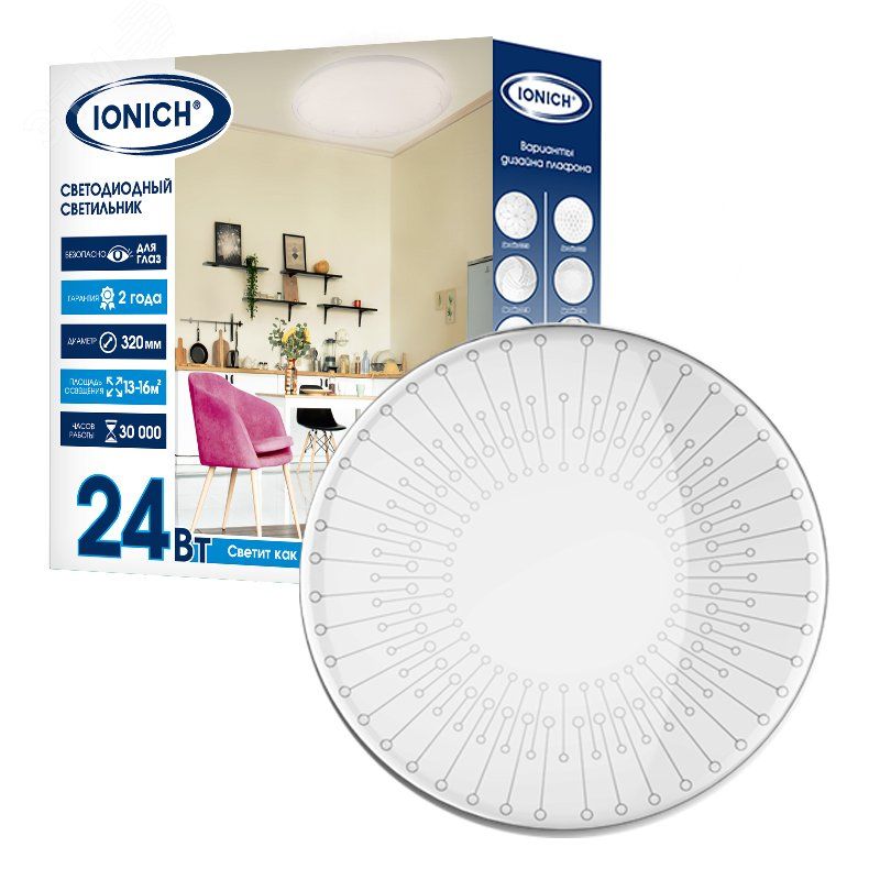 Светодиодные декоративные светильники TM IONICH предназначены для внутреннего освещения административных, общественных и жилых помещений, ресторанов, отелей и кафе и рассчитаны на переменное напряжение 220В, 50 Гц.