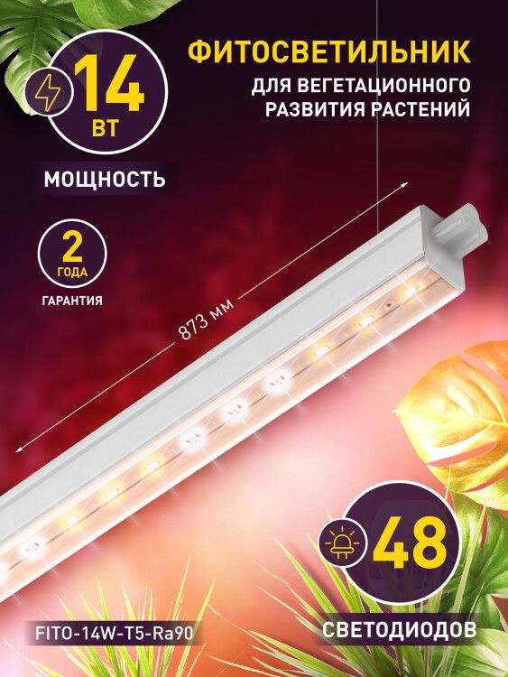 Светильник светодиодный для растений полного спектра FITO-14W-T5-Ra90 (30) | Б0049312 ЭРА