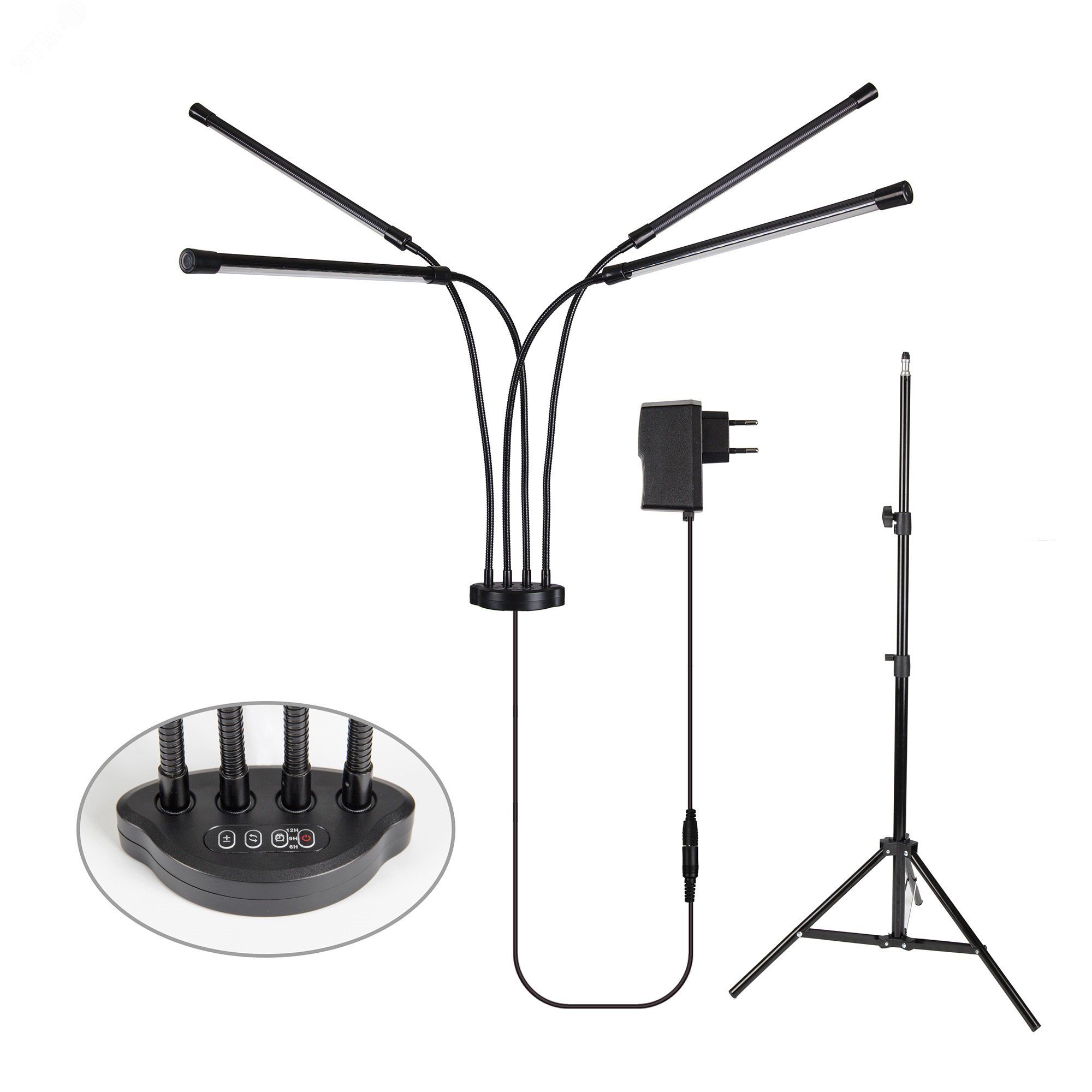 Светильник светодиодный для растений ULT-P32-36W/SPLE/TM/40 IP40 BLACK QUAD с таймером на штативе спектр фотосинтеза Uniel UL-00008905