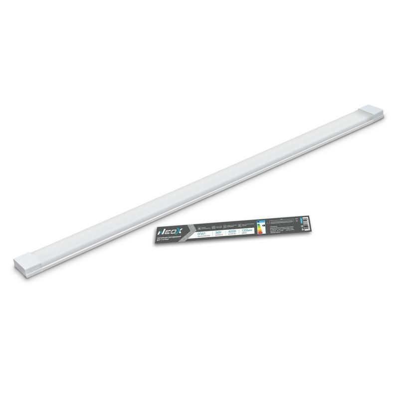 Светильник светодиодный ДПО-110 опаловый 36 ватт 4000К 1200 миллиметров IP40 от бренда NEOX - линейный источник света для равномерного и комфортного освещения помещений с высокой проходимостью. Подходит для установки в офисах, школах, магазинах и других общественных зонах.