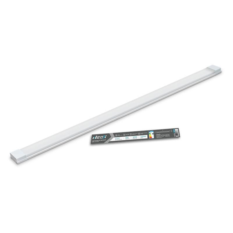 Светильник светодиодный настенно-потолочный ДПО-110 опал 50 ватт 4000К 1200 миллиметров IP40 от бренда NEOX - это линейный источник света для равномерного и комфортного освещения помещений с высокими требованиями к качеству света. Подходит для установки в офисах, школах, магазинах и других общественных зонах.