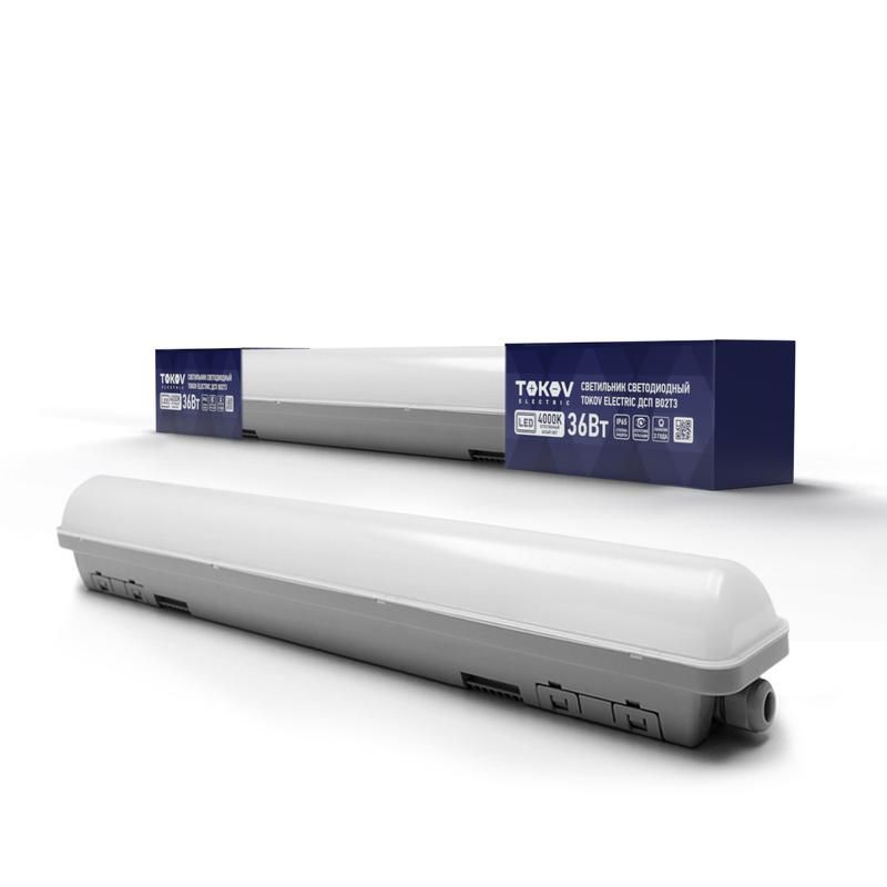 Светильник светодиодный ДСП B02Т3 36 ватт 4000К IP65 3600 люмен подключение в линию до 7 штук от бренда TOKOV ELECTRIC - это энергоэффективный источник света для помещений с высокими требованиями к защите от пыли и влаги. Подходит для установки на стены и подвесного монтажа, позволяет подключать до семи единиц последовательно в одну линию.