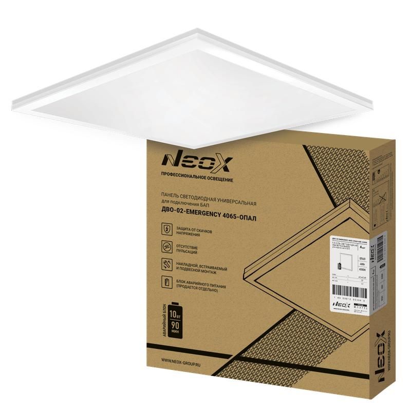 Светильник светодиодный ДВО-02-EMERGENCY 4065-ОПАЛ 40Вт 6500К 595х595х25мм без БАП-10W90 универс. панель NEOX 4690612053042