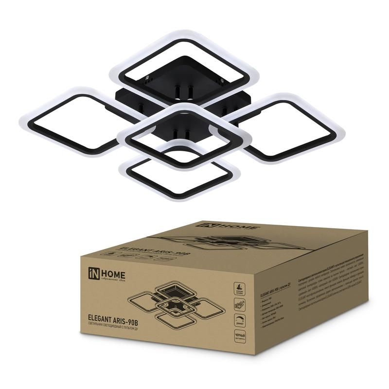 Светильник светодиодный ELEGANT ARIS-B 90Вт 230В 3000-6500K 7000Лм 590х590х130мм c пультом ДУ черный IN HOME - 4690612035413