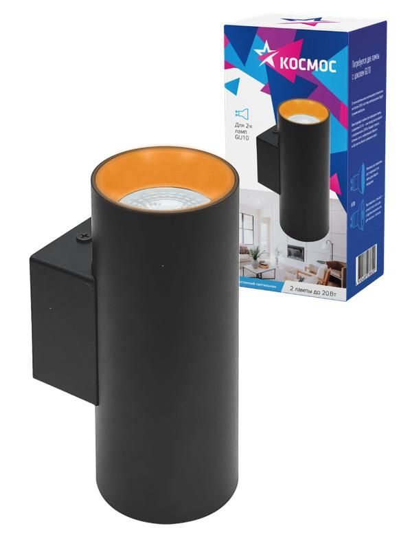 Светильник светодиодный FixtGU10_003Black под 2 лампы GU10 накладной черн. КОСМОС KFixtGU10_003Black - это настенный светильник с современным дизайном и удобной заменой лампы. Он идеально подходит для использования как бра и легко монтируется на стену и разные типы потолка.