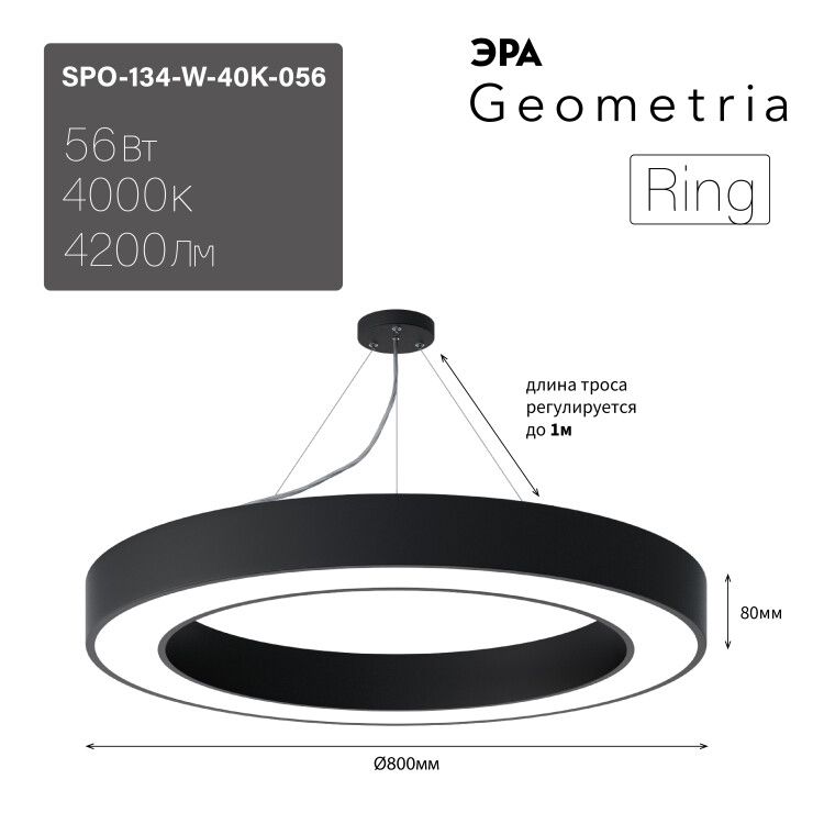 Светильник светодиодный Geometria Ring SPO-134-W-40K-056 56Вт 4000К 4200Лм IP40 800х80 бел. подвесной драйвер внутри ЭРА Б0058906