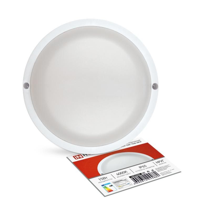 Светильник светодиодный герметичный СПП 1540-КРУГ 15 ватт 4000 Кельвин 1350 люмен IP65 140 миллиметров от бренда IN HOME - компактное решение для надёжного и энергоэффективного освещения в условиях высокой влажности, запылённости или наружной среды под навесом.