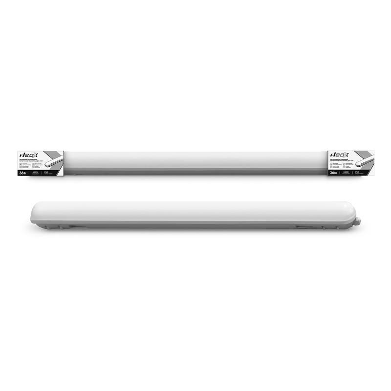Светильник светодиодный герметичный транзитный 36 ватт 6500 кельвин 125 люмен/ватт 4500 люмен 1200х64х60 миллиметров IP65 от бренда NEOX - это мощный, защищённый источник света для помещений с высокой влажностью и запылённостью. Артикул 4690612048345 предназначен для постоянной работы в сложных условиях, где важна надёжность и долговечность.
