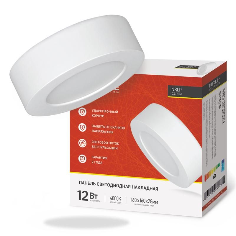 Светильник светодиодный NRLP 12Вт 4000К IP40 840лм 230В 160мм круглый накладной панель бел. IN HOME 4690612038490