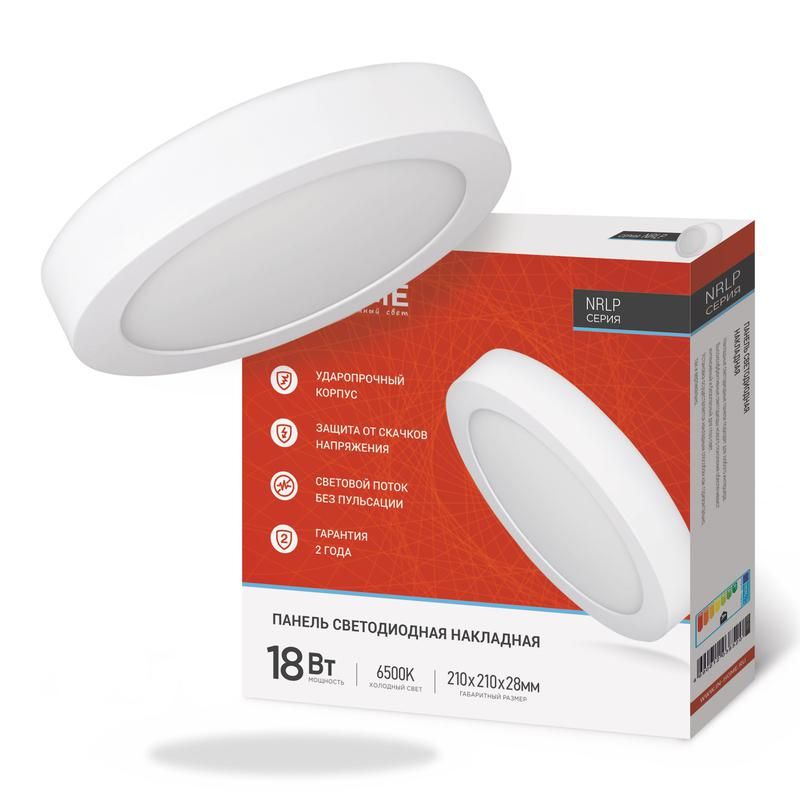 Светильник светодиодный NRLP 18Вт 6500К IP40 1260лм 230В 210мм круглый накладной панель бел. IN HOME 4690612038520