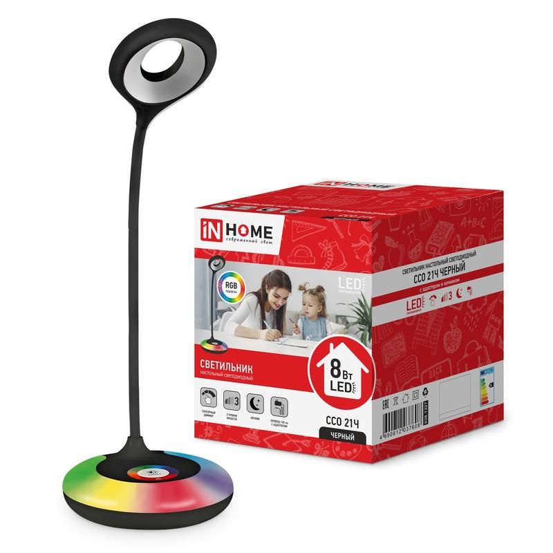 Светильник светодиодный настольный ССО 21Ч 8Вт 6500К 640лм RGB-подсветка сенсор-диммер с адаптером черн. IN HOME 4690612037608