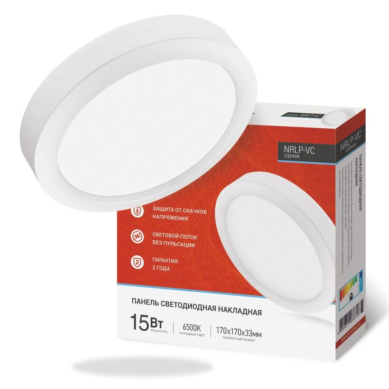 Светильник светодиодный NRLP-VC 15Вт 6500К IP40 1200лм 230В 170мм круглый накладной панель бел. IN HOME 4690612038728