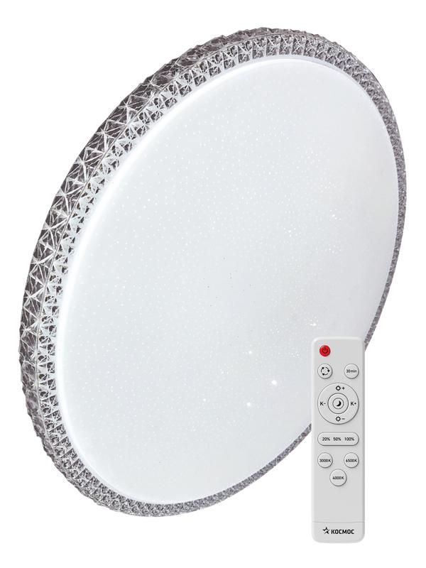 Светильник светодиодный настенно-потолочный КОСМОС Premium Mystery (арт. ksmyst75w) - универсальное решение для регулируемого освещения в офисах, магазинах и домашних интерьерах. Управление через пульт ДУ, изменяемая цветовая температура и высокий световой поток делают его удобным для создания комфортной атмосферы.