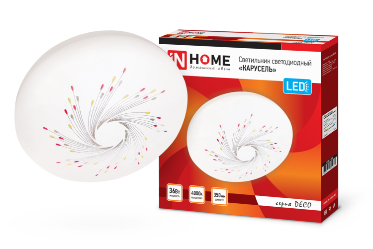 Светильник светодиодный серии DECO 36Вт 230В 4000К 2340лм 350х55мм КАРУСЕЛЬ | 4690612025025 IN HOME - это современный светодиодный светильник, предназначенный для внутреннего освещения различных помещений. Он имеет яркий равномерный световой поток и работает на основе последнего поколения светодиодов, что обеспечивает максимальную экономию электроэнергии.