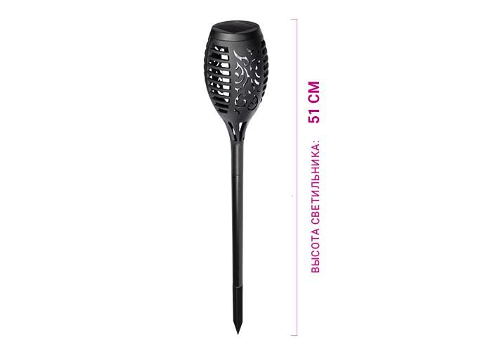 Светильник светодиодный садовый с колышком эффект факела 12 светодиодов высота 51 см солнечная батарея IP44 предназначен для создания мягкой, рассеянной подсветки на открытых территориях. Подходит для оформления садовых дорожек, клумб, зон отдыха, беседок и приусадебных участков. Благодаря имитации пламени факела, он усиливает атмосферу вечернего времяпрепровождения, не перегружая пространство ярким светом.