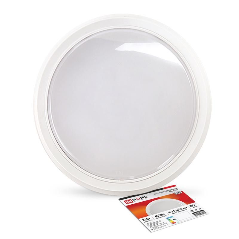 Светильник светодиодный СПБ-2-КРУГ от IN-HOME - это компактный настенно-потолочный прибор мощностью 24 Вт с яркостью 1700 лм и цветовой температурой 6500 К, подходящий для равномерного освещения помещений с повышенной влажностью или требованием к чистоте. Артикул 4690612033181 соответствует серии Светильники ЖКХ и предназначен для замены устаревших люминесцентных светильников.