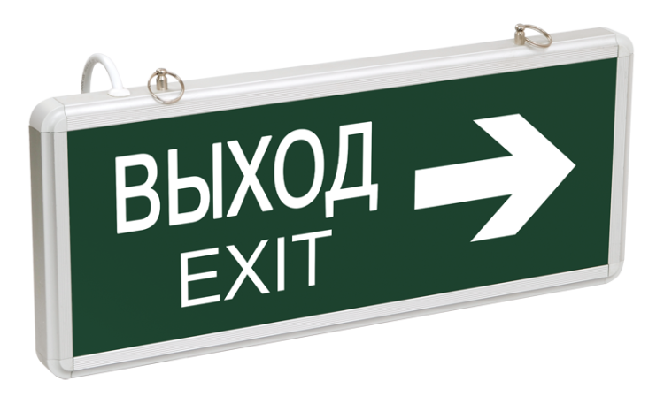 Светильник аварийный светодиодный ССА1004 ВЫХОД-EXIT стрелка направления двусторонний 3Вт 1,5ч постоянный подвесной IP20 от IEK предназначен для обеспечения видимости путей эвакуации при отключении основного питания. Устройство работает в двух режимах: постоянном - от сети 230 В и аварийном - от встроенного аккумулятора. Подходит для установки в помещениях с нормальными условиями эксплуатации, например, в офисах, торговых центрах, школах и других зданиях, где требуется четкая визуальная сигнализация выходов.