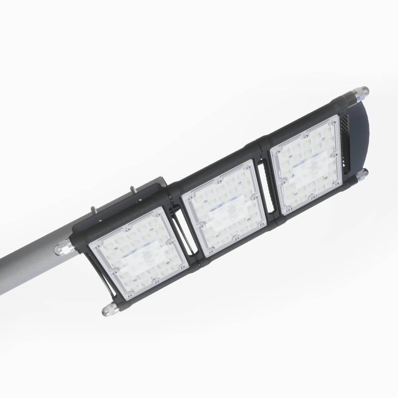 Светильник светодиодный ДКУ19-150-Ш монтируется консольным способом - крепится на стену, столб или фланец. Подключение осуществляется через концевые клеммы, что позволяет легко подключить питание с одного торца. Для установки необходима поверхность с отверстием диаметром 48–50 мм - именно такой размер имеет верхний отруб, который используется для прохода кабеля. Монтаж возможен как горизонтально, так и вертикально. Лампа встроена и не подлежит замене - весь прибор меняется целиком при выходе из строя.