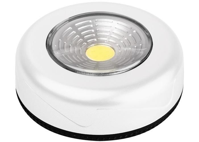 Светильник светодиодный пушлайт 1 Вт COB 7500 К IP20 60 лм 3хAAA (батарейки не в комплекте) белый предназначен для точечного освещения в условиях, когда нельзя использовать проводную систему. Подходит для установки в шкафах, на рабочих поверхностях, в гаражах, кладовых, подъездах и других закрытых помещениях. Устройство активируется нажатием - идеально для ситуаций, где нужен кратковременный свет.